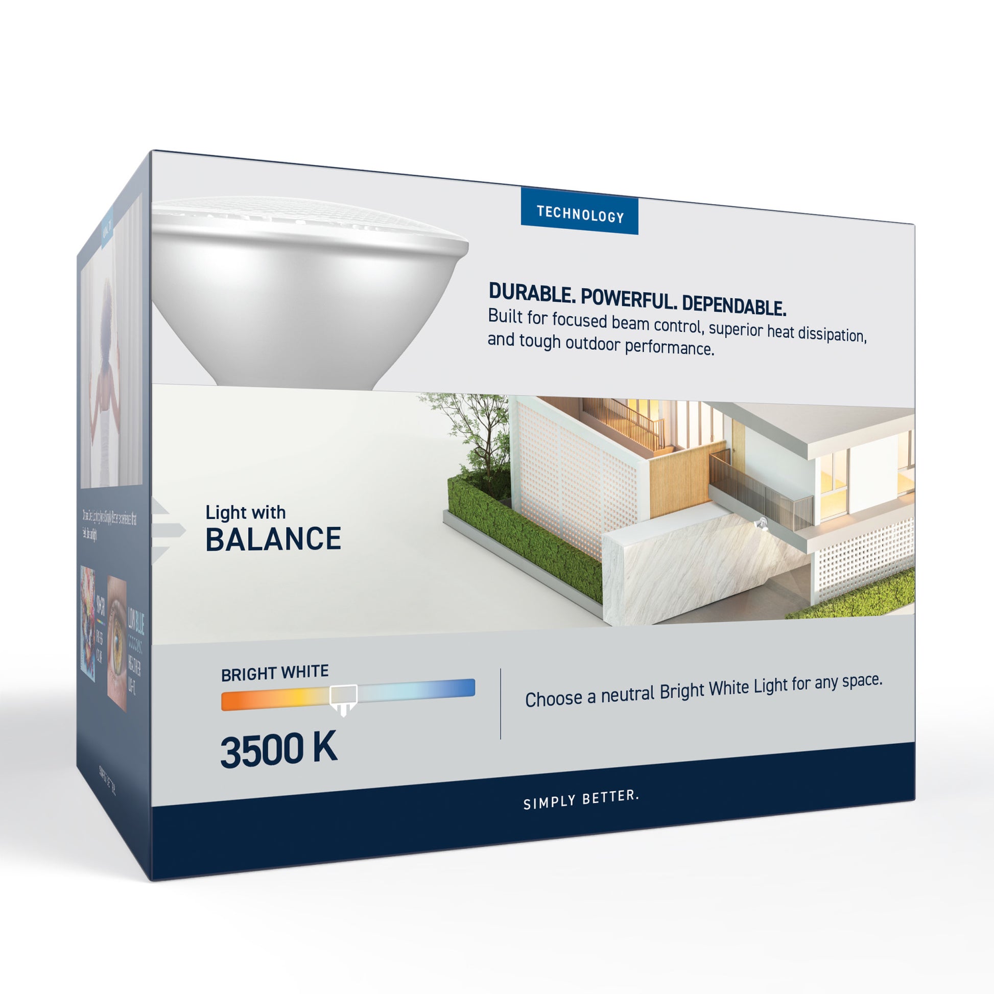 Upgrade your lighting game with our PAR38 Bright White LED Bulb, designed to deliver balanced efficiency with every Lumen. Emitting a Bright White light (3500K), this bulb strikes a perfect balance between comfort and vibrance, perfect for any space inside or outside. Low Blue technology filters out harsh blue light that can cause eye strain, headaches, and disrupt sleep. With a remarkable 90+ Color Rendering Index (CRI), colors appear more vivid and true-to-life, enhancing the beauty of your home’s décor and making everything look its best. Built to last with an impressive 25,000-hour lifespan, this energy-efficient LED saves you money and time, reducing replacements and energy costs compared to traditional 90W incandescent bulbs. Featuring a medium E26 base, it’s compatible with most fixtures, making upgrades effortless. The bulb's dimmable design lets you set the mood with a flick of your wall switch, whether it’s on your patio, in the garage, or lighting up the foyer. Illuminate your world with a bulb that combines comfort, clarity, and reliability in one brilliant package.