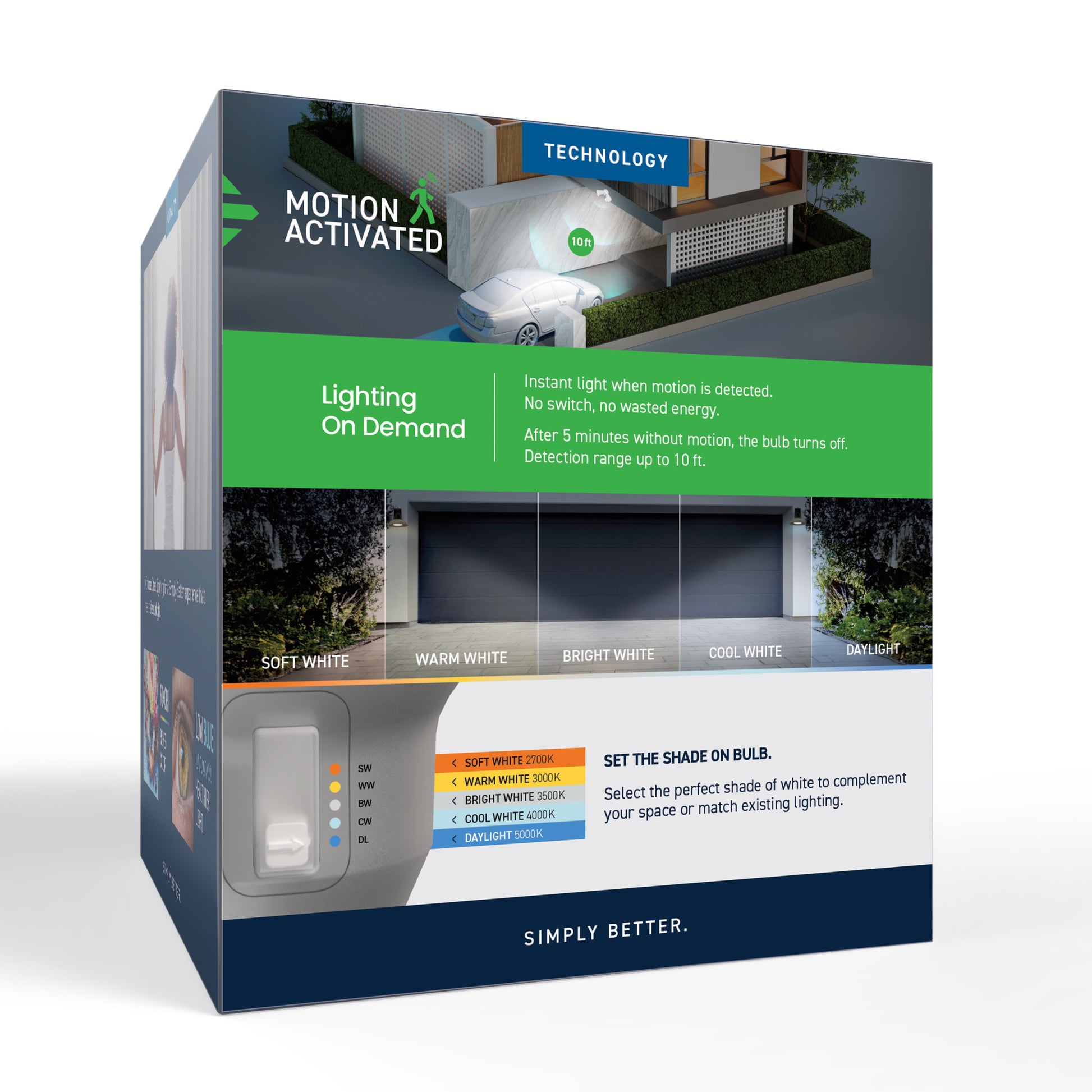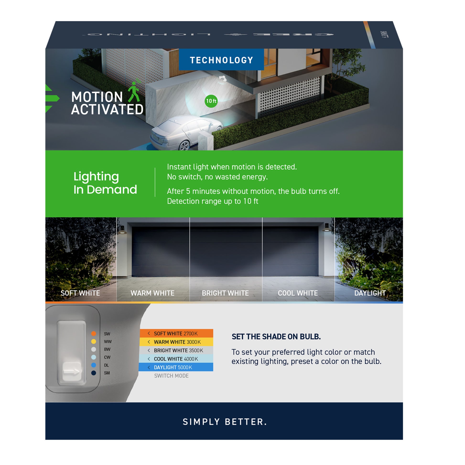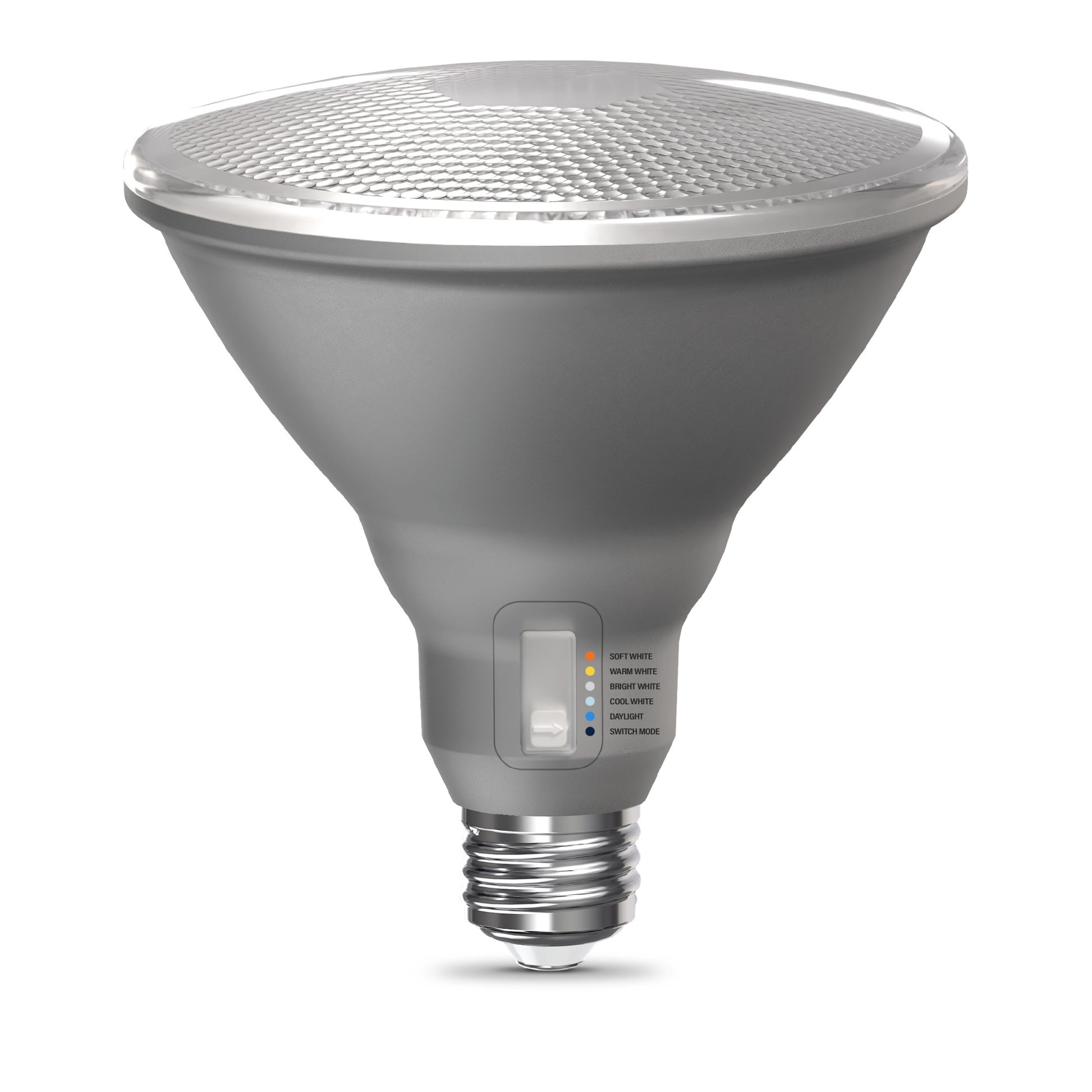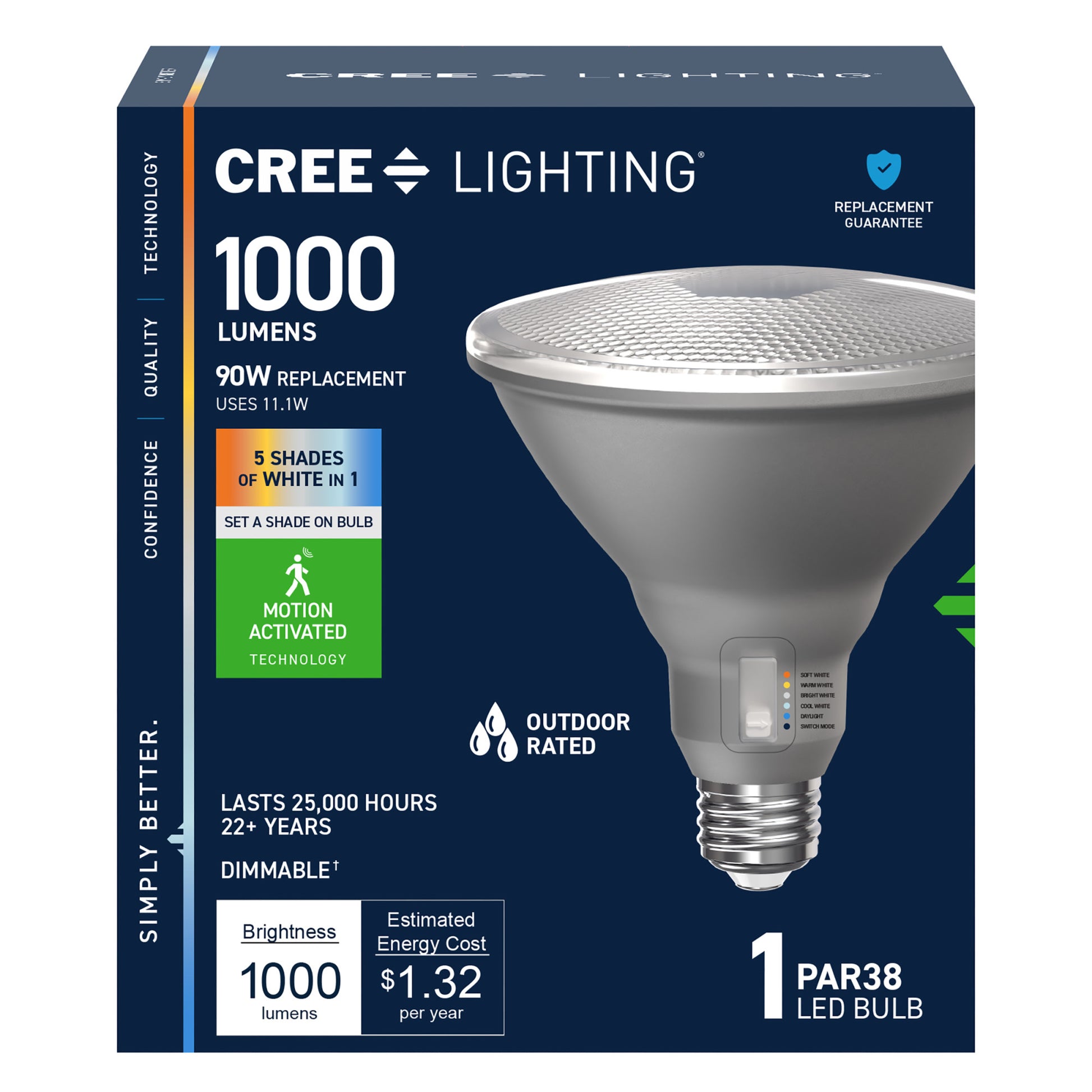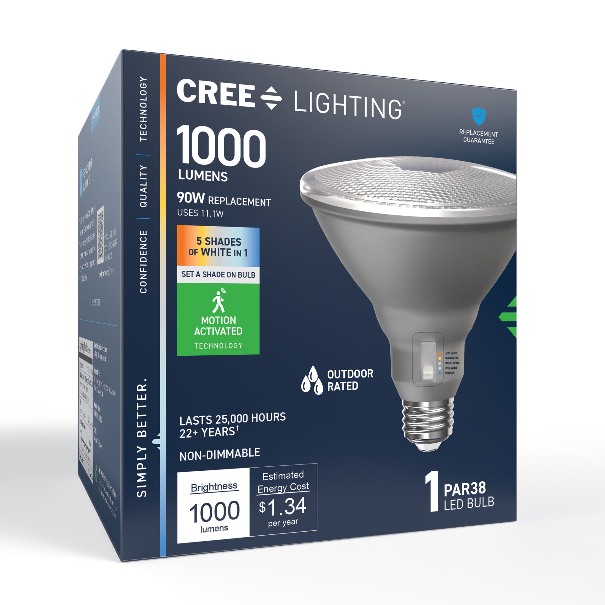 Upgrade your indoor and outdoor spaces with the flooding light of 5 Shade Switchable White Motion Activated PAR38 Bulb that lets you go hands-free with an integrated sensor that turns the bulb on when motion is detected. Low Blue technology filters out harsh blue light that can cause eye strain, headaches, and disrupt sleep. All the benefits of advanced LED technology come through in this 1000 Lumen bulb that does with 11.1 Watts what a traditional incandescent bulb does with 90W, saving costs and energy use by up to 87.7%. Choose between Soft White (2700K), Warm White (3000K), Bright White (3500K), Cool White (4000K), and Daylight (5000K) and set up on your covered patios, outdoor fixtures, bathrooms, or pantries for hands-free convenience. With a remarkable 90+ Color Rendering Index (CRI) and rated for wet environments, no detail will be left unlit in your home or on your property. Featuring a medium E26 base and a lifespan of 25,000 hours, this reliable LED bulb is an easy upgrade that you can install and leave for years without a replacement.