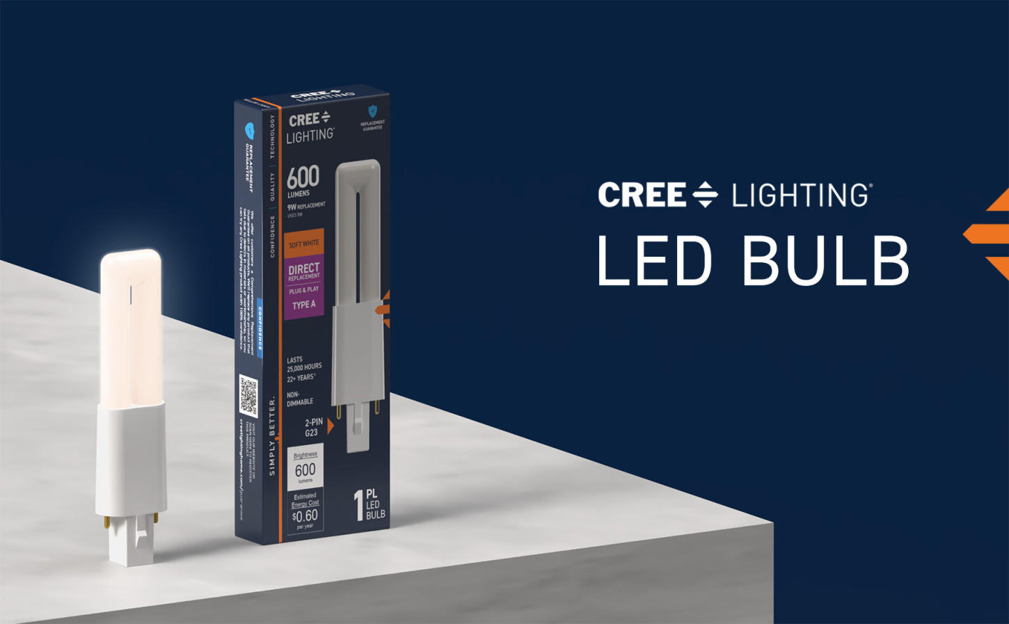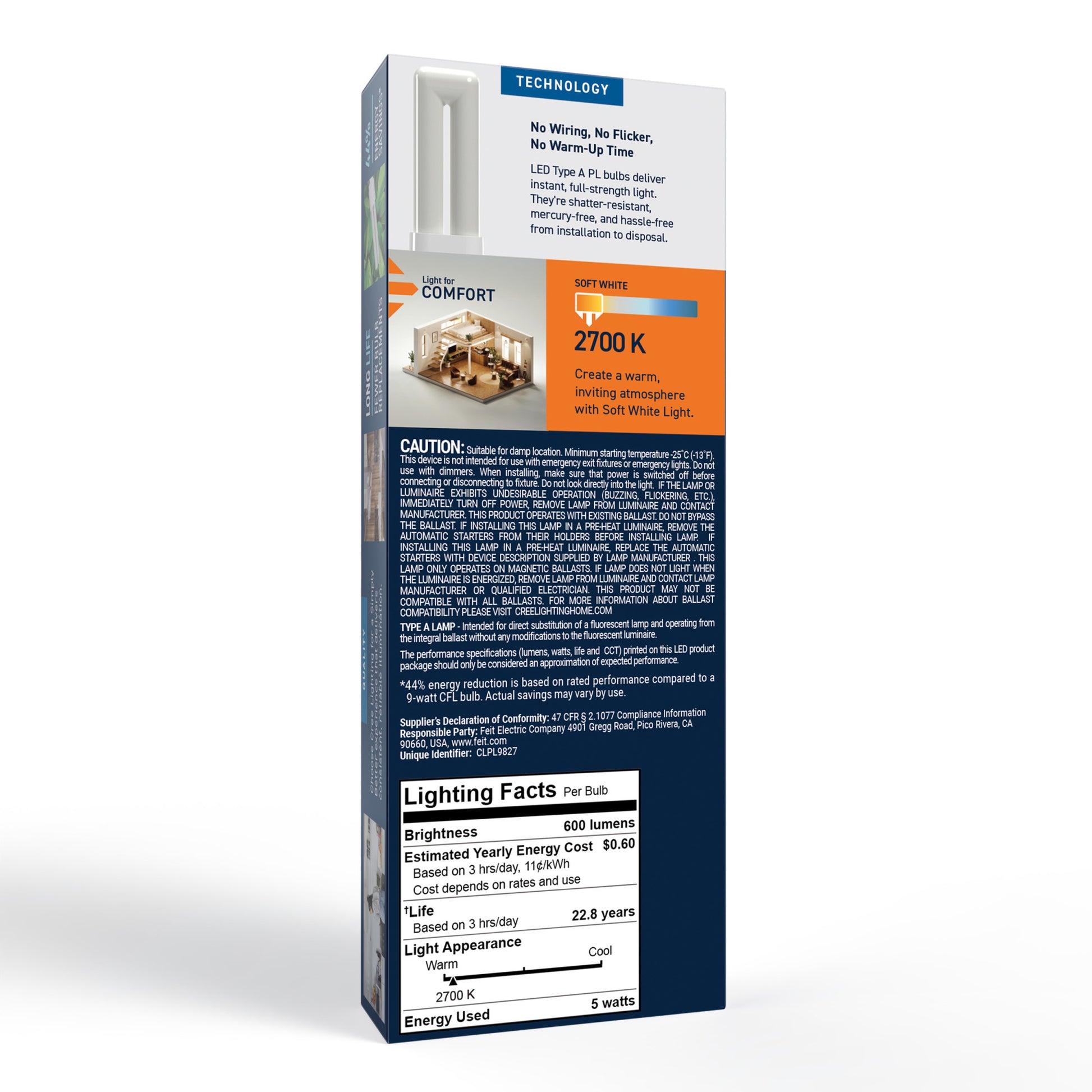- 5W LED replaces standard 9W fluorescent PL bulbs